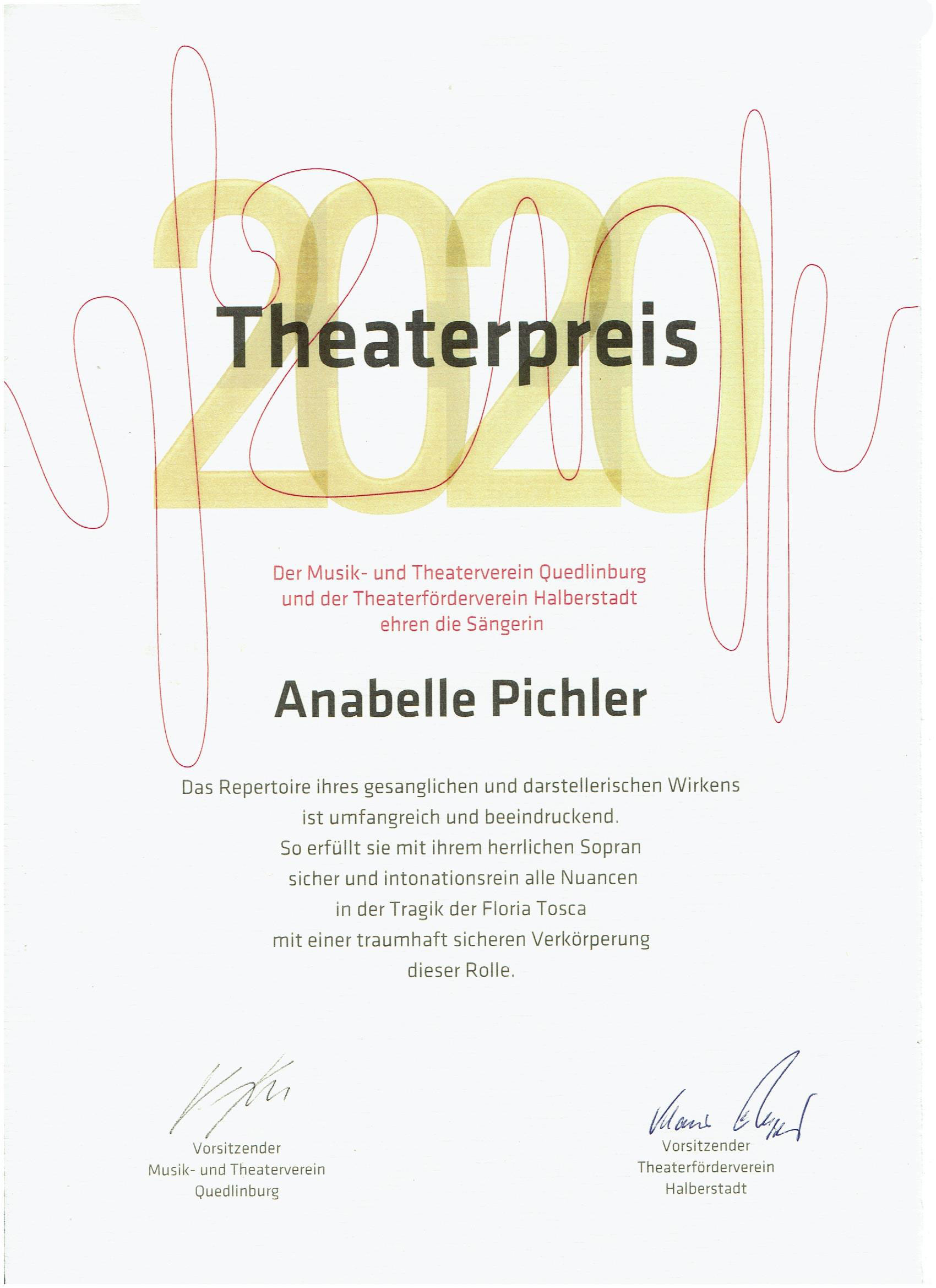 Coronabedingt konnte 2020 keine Preisverleihung stattfinden, obwohl die Preisträger bereits nominiert waren. Deshalb wurden diese Preise (bereits zum vierzehnten Mal) durch den Theaterförderverein Halberstadt und den Musik- und Theaterverein Quedlinburg am 06.11.2021 im Rahmen des 2. Sinfoniekonzertes der Saison vergeben.